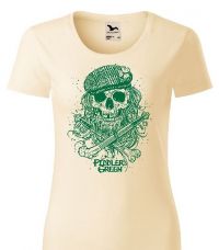 Vanillwhite Girl Shirt with onecolor "Skull Cap" on front and backside label. Öko Printing Color